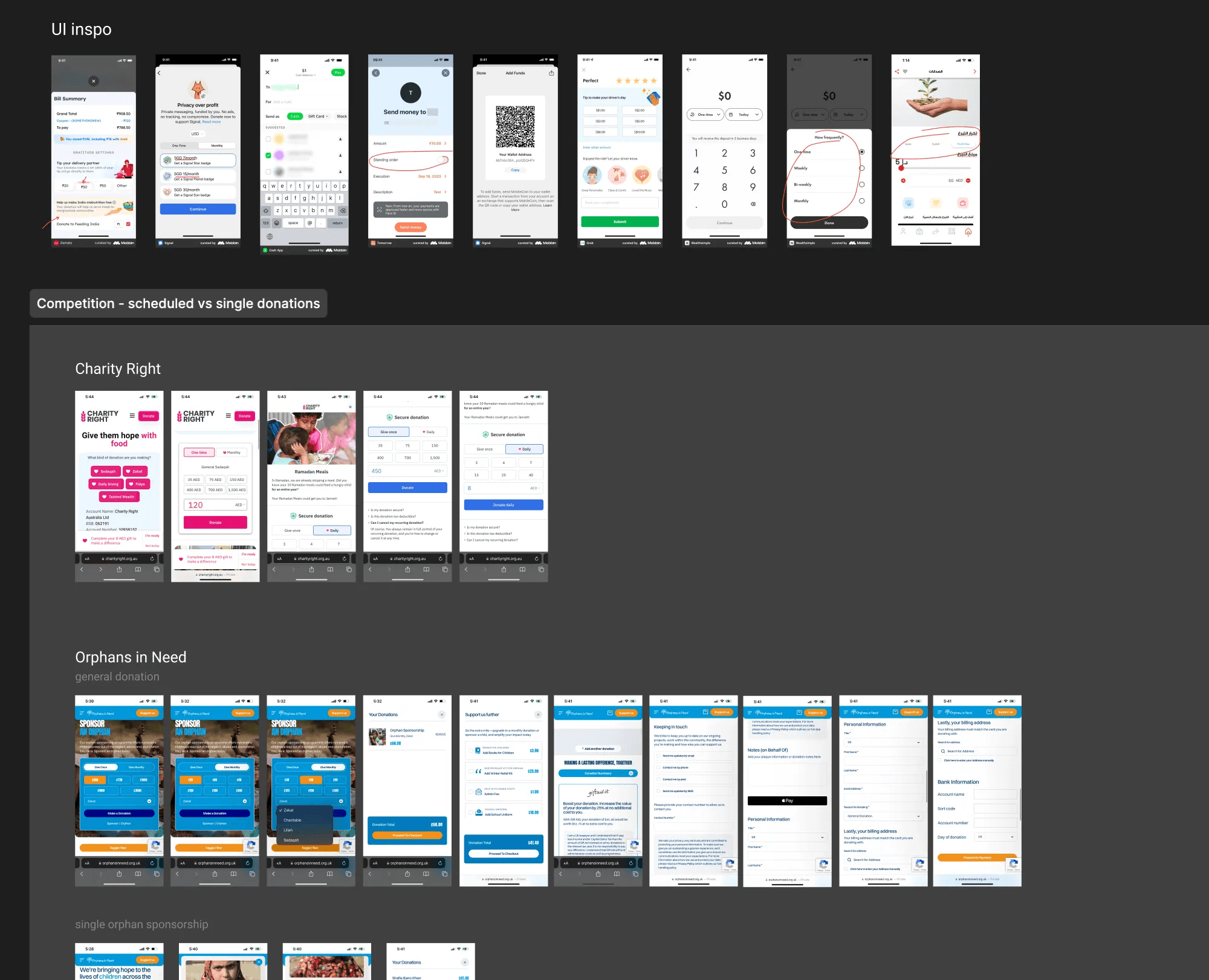 So to achieve that, I did a quick round on existing donation flows in competitor apps to get some insights: