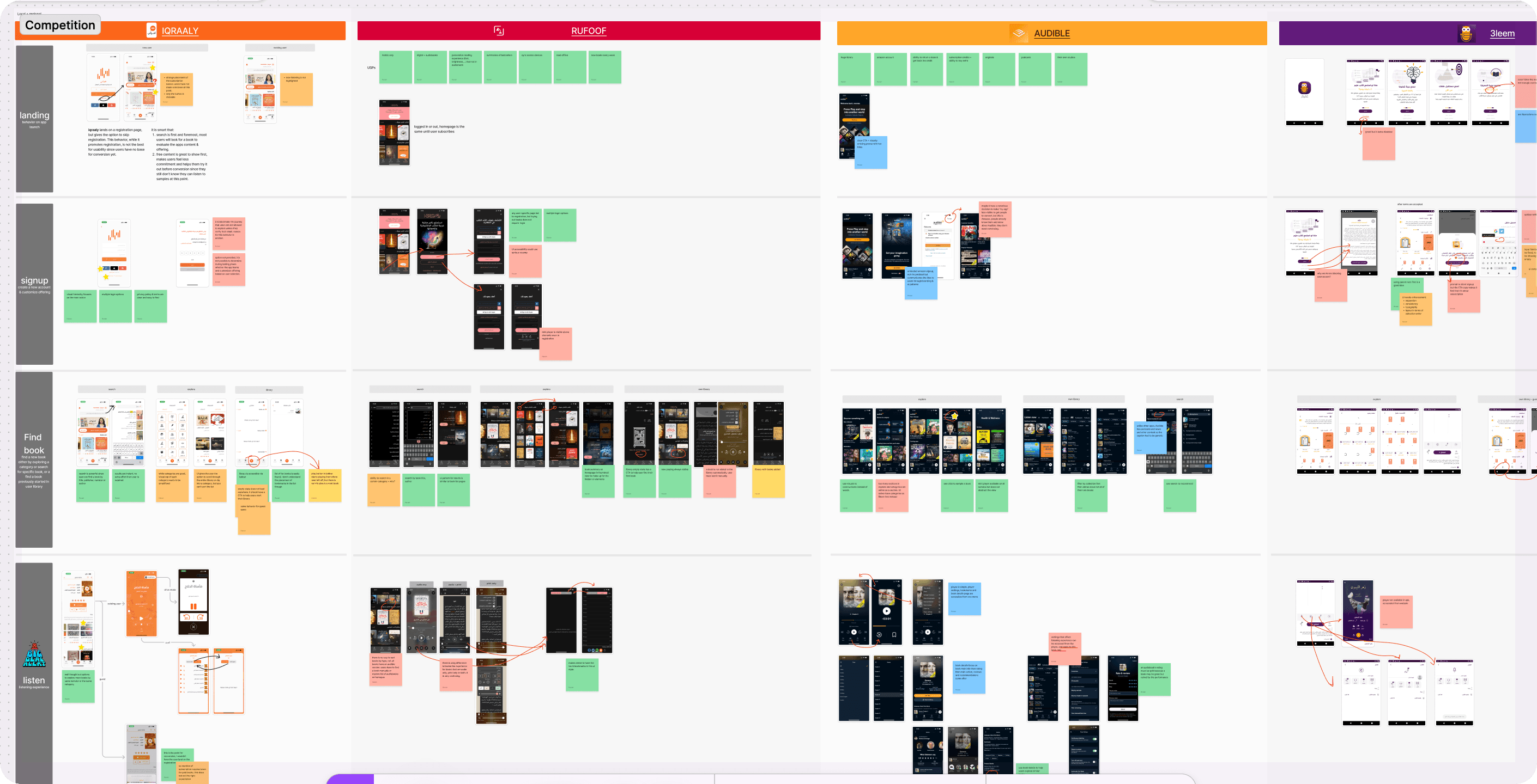 study 4 local, regional and international competitor apps to compare the different journeys and learn what can be applied and what should we avoid when redesigning 3leem for adolescents in the MENA region.