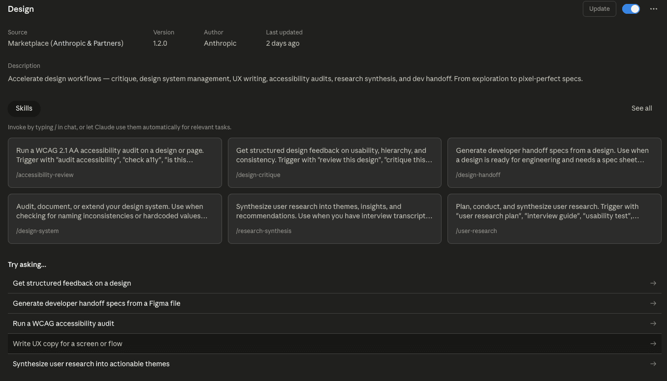 Install the Design plugin by Anthropic.
