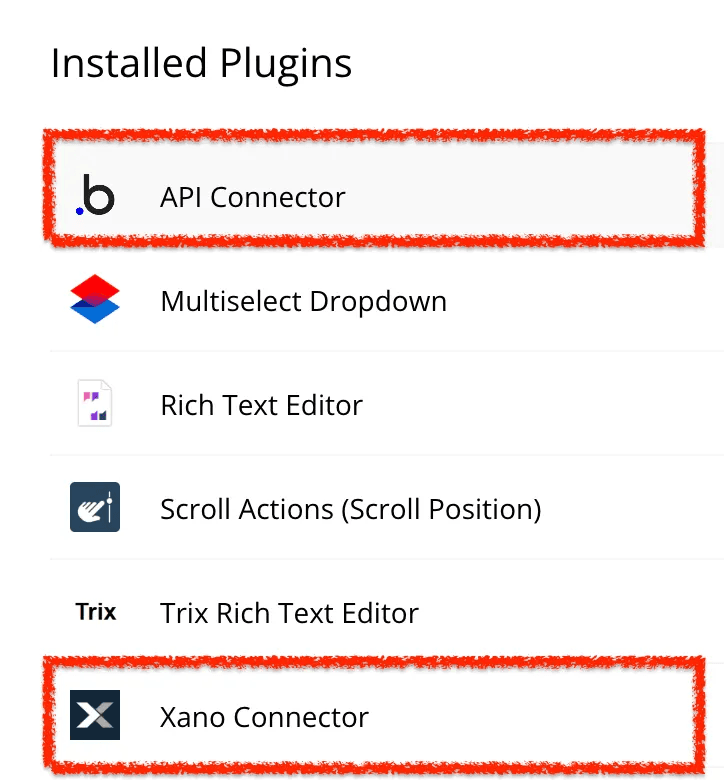 ➡️ Plugins: Install the api connector & Xano connector plugins by Eli.