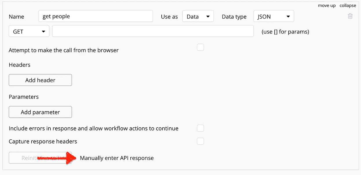 ✅ It is important to know that our api call returns metadata like page number, number of items and the like beside the items themselves, so the datatype for our Xanodata element is get people item.